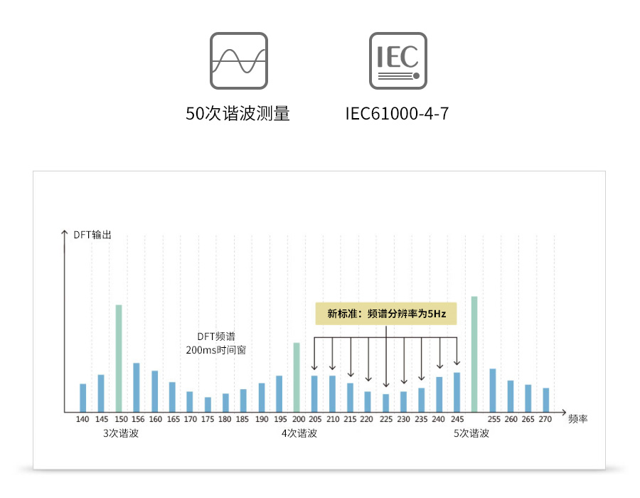 PA300系列數字功率計可進行完全符合諧波測量國際標準IEC61000-4-7的測定,根據基波的頻率,最高可測量至50次諧波。