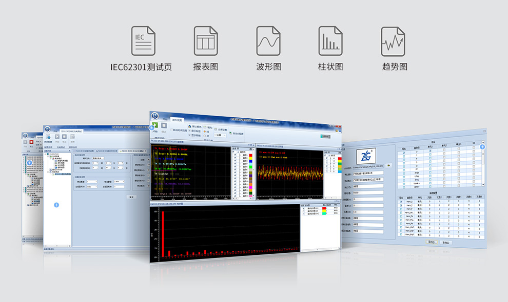 PAM管理軟件具有強大的數據處理分析功能,支持對所有測量參數數值進行實時顯示,生成各次諧波數據、諧波柱狀圖、趨勢圖和波形圖,支持同步顯示與報表導出。支持IEC62301國際測試標準,實現待機功耗的自動化測試。